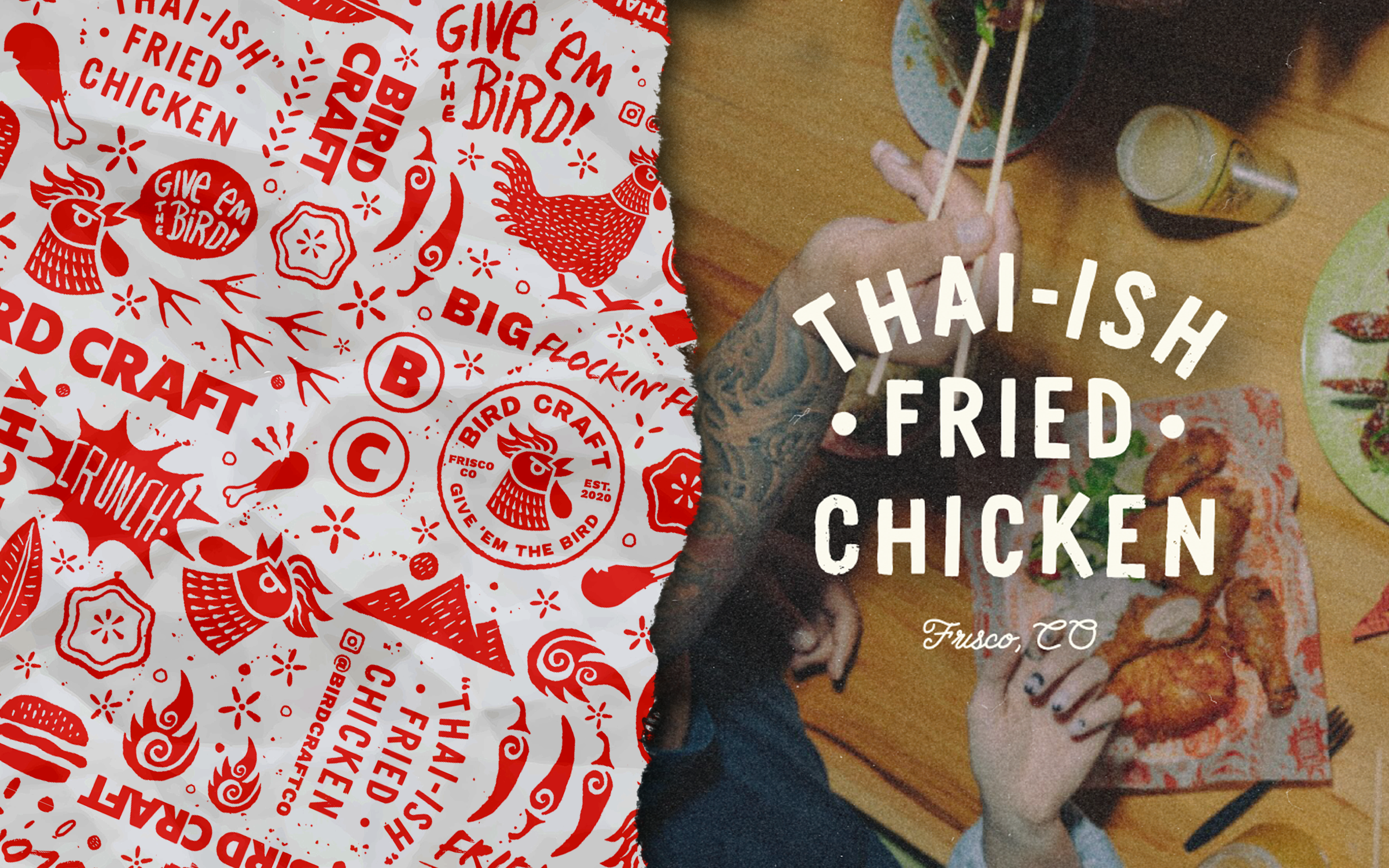 Logos, branding, and interior space consultation for Bird Craft, a “Thai-ish” fried chicken joint in the Colorado mountains.